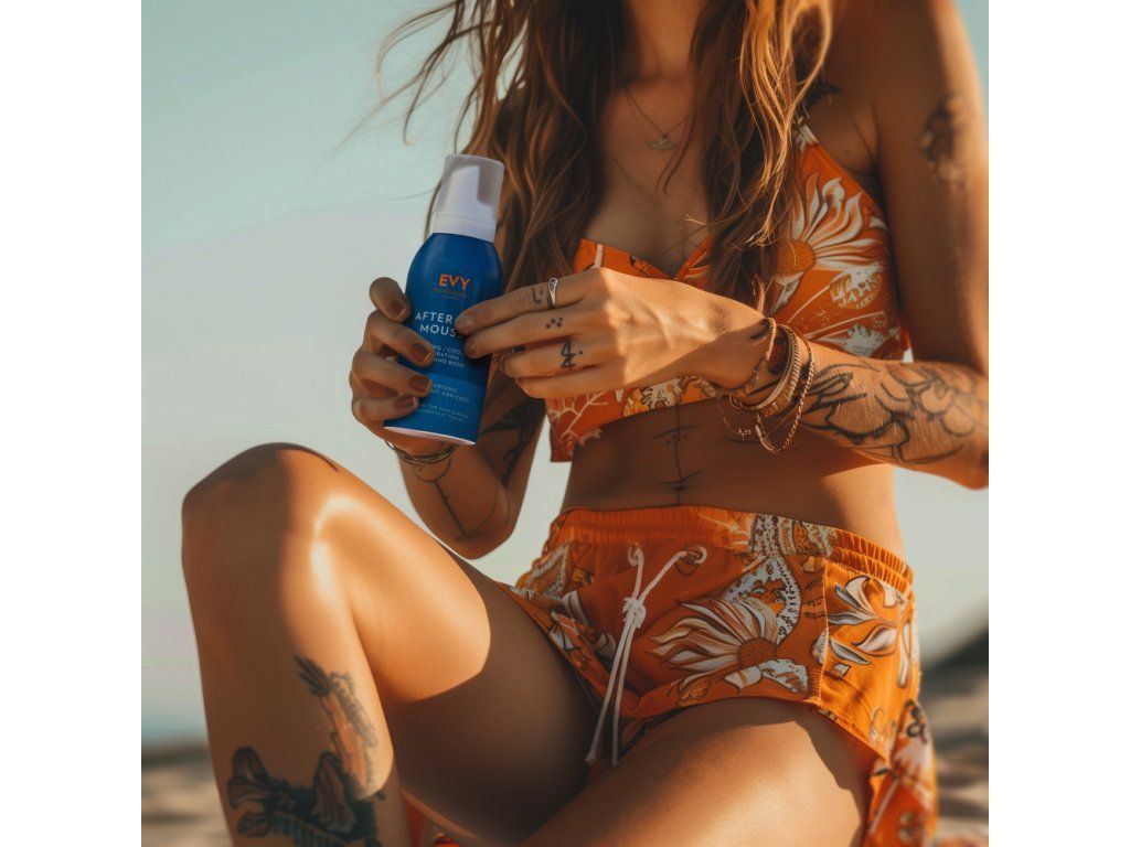 EVY AFTER SUN MOUSSE je inovativní pěna, která poskytuje pokožce intenzivní hydrataci až 12 hodin. Díky receptuře obohacené o vitaminy C a E, ureu a kyselinu glutamovou, pokožku po pobytu na slunci regeneruje a hydratuje, a pomáhá jí udržet si svou opálenou barvu. V kombinaci s přísadami jako panthenol a aloe vera, ji navíc ochlazuje a uklidňuje. Je ideálním produktem pro všechny typy pleti, včetně citlivé, náchylné na ekzémy, jakož i pro pleť, která podstoupila laserové ošetření, mikroihličkování a chemický peeling.