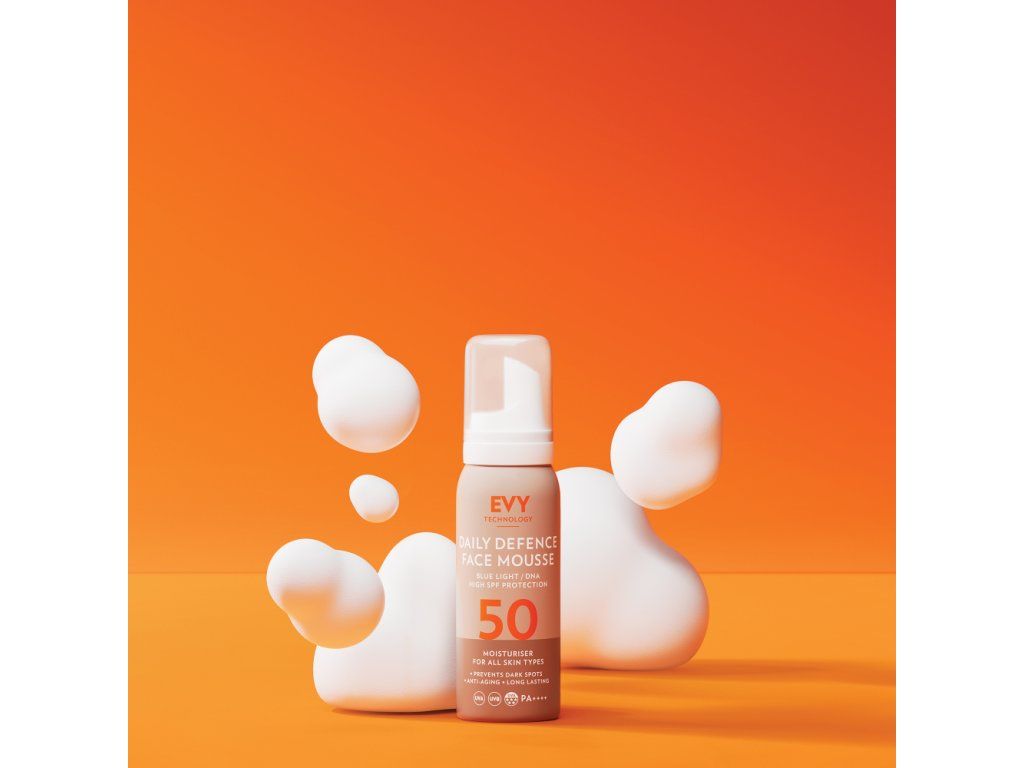 Zabraňte známkám předčasného stárnutí pomocí EVY Daily Defence Face Mousse SPF 50.